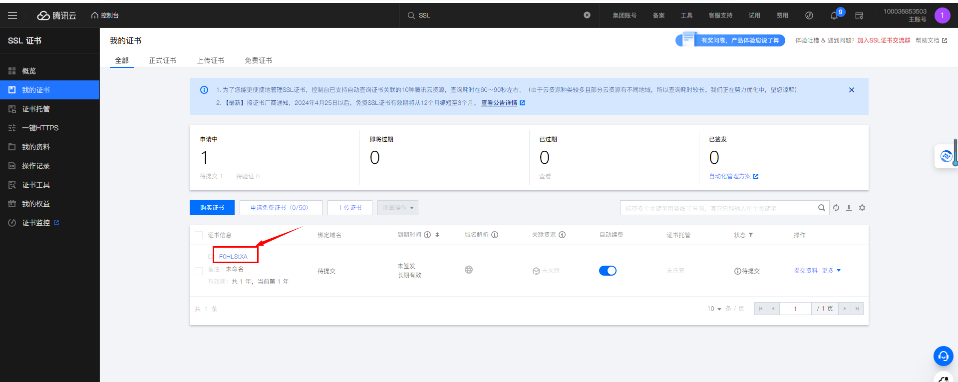 我的证书里找到证书ID,点击证书ID
