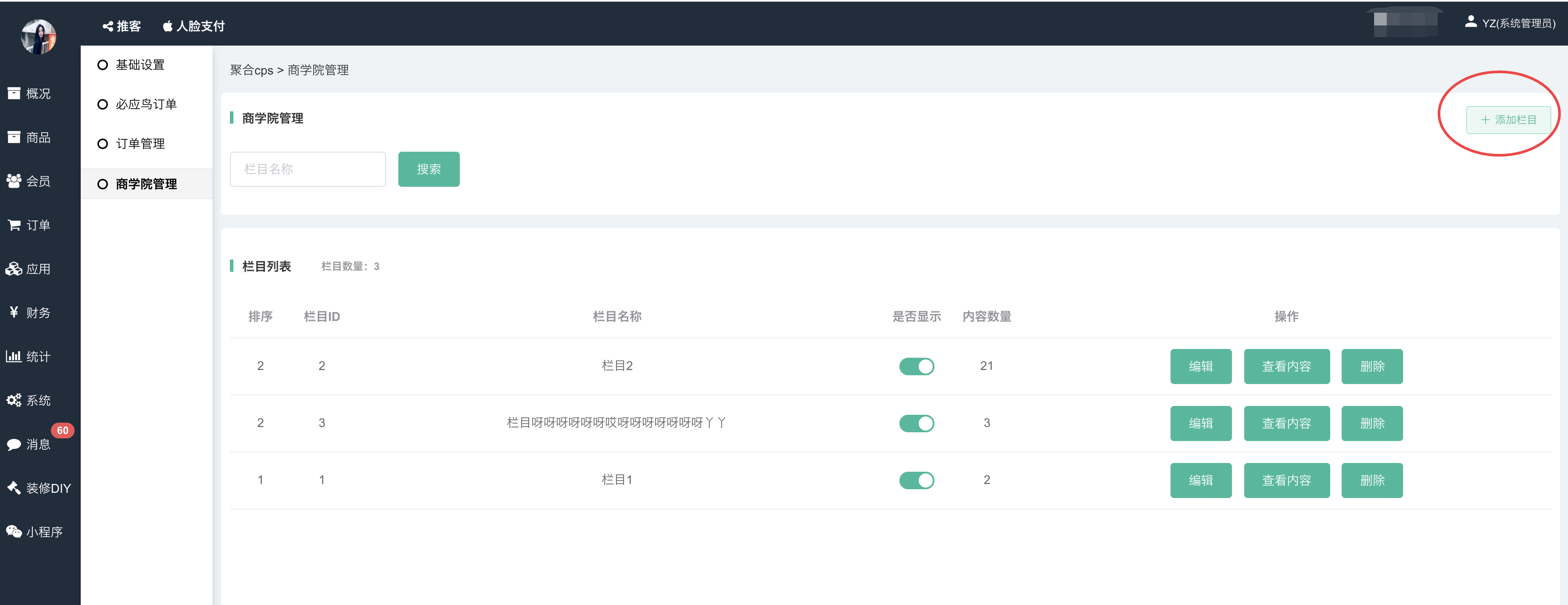 可设置多个栏目,每个栏目设置多条内容,每条内容跳转到指定链接;