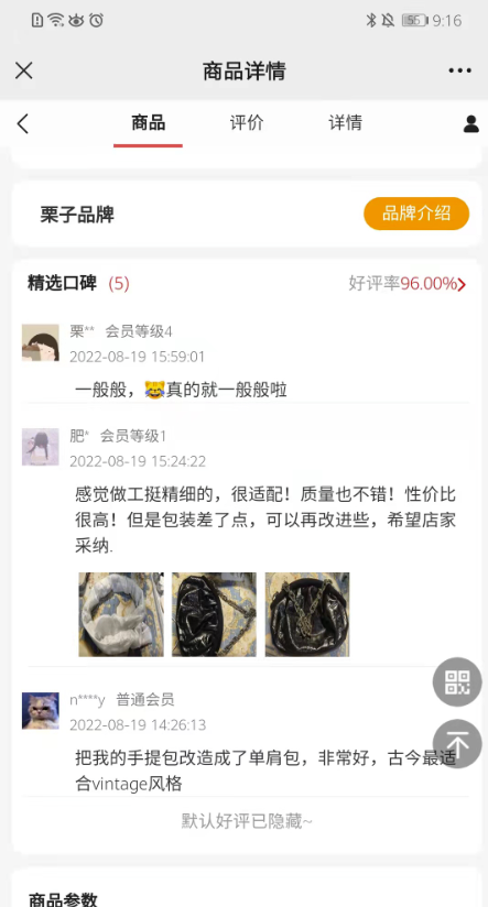 不开启显示,商品详情页不显示评论,效果如下