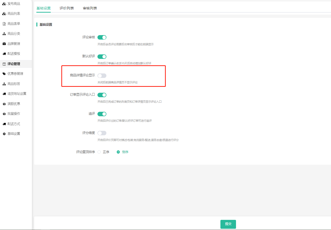 7、增加商品详情页控制评论显示开关