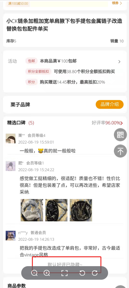 开启后订单确认收货15天后自动增加默认好评,注意:商品详情里的评价不会显示自动默认好评,仅显示默认好评已隐藏,效果如下图.