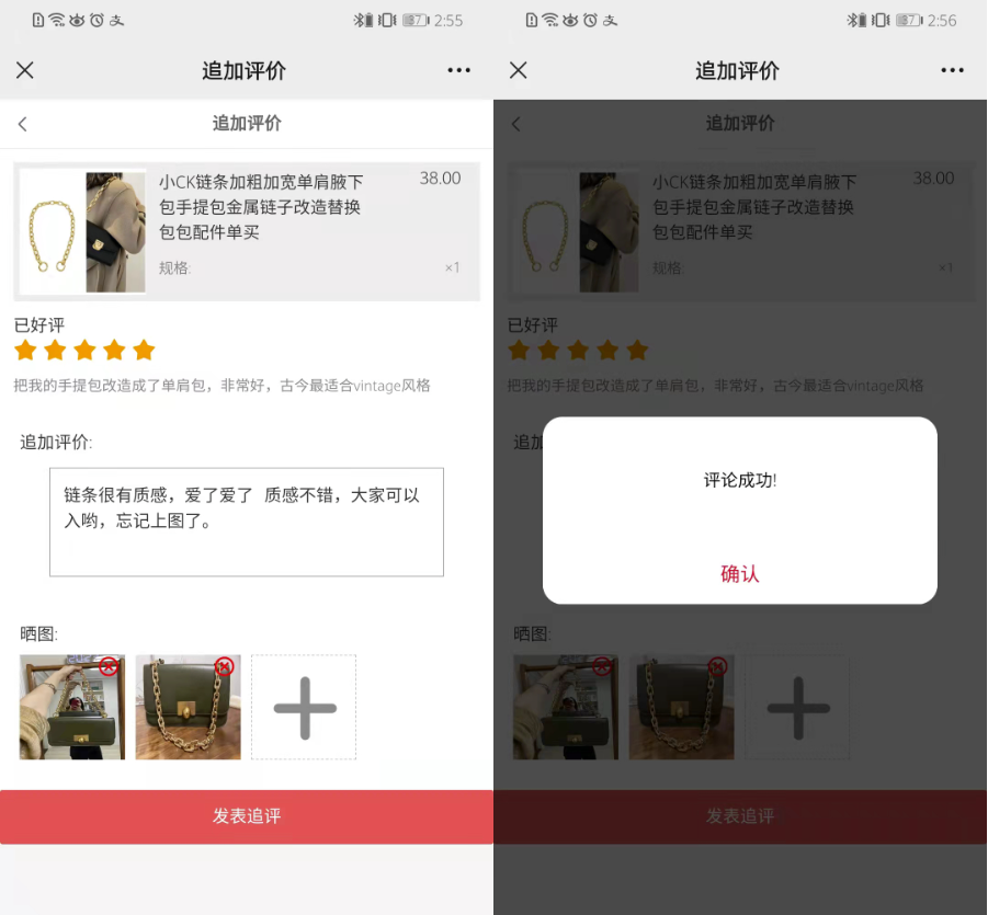 追评界面(不会显示评分维度)如下:
