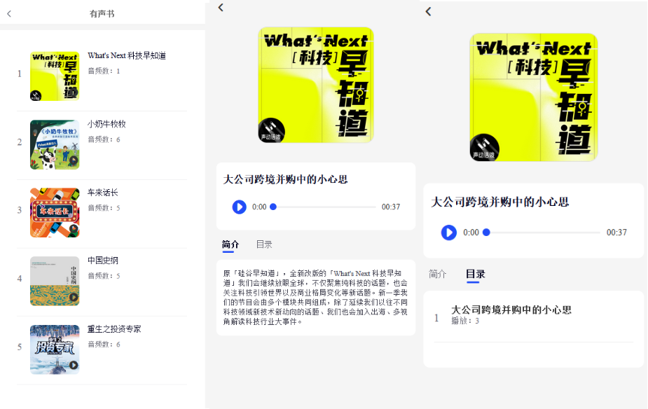 利用音频形式将书籍内容进行呈现,满足用户多元化的知识内容需求